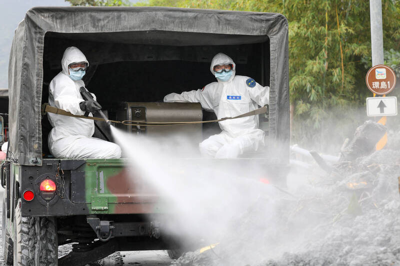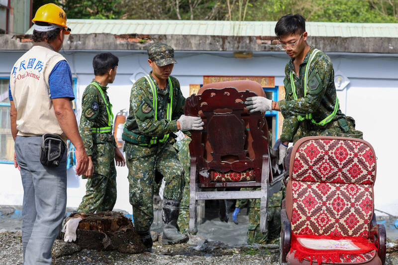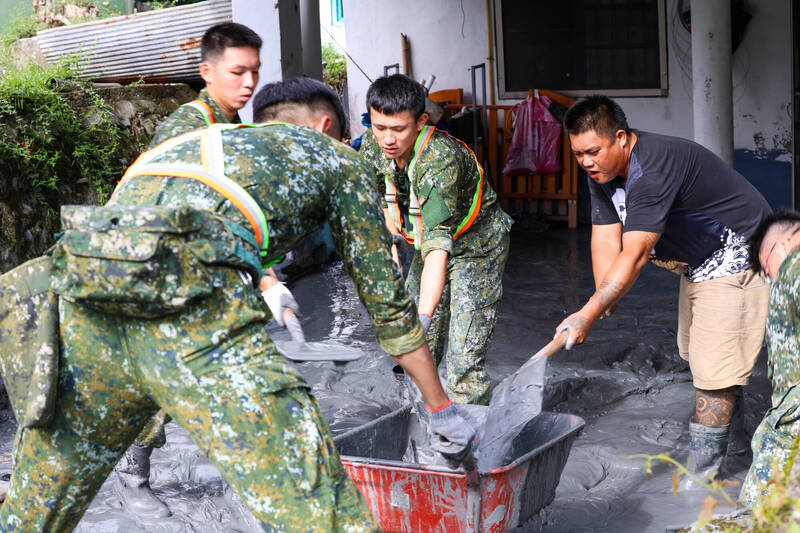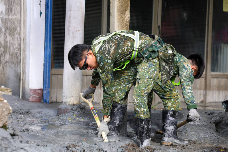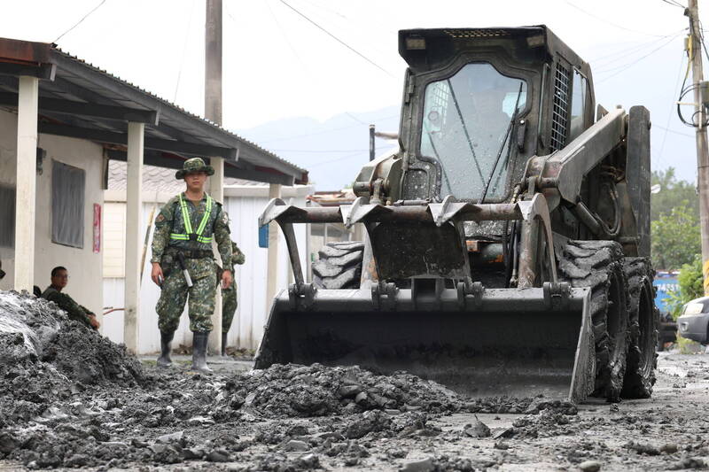 另外,國軍第二作戰區偕同跨區增援的第四、第五作戰區及海軍陸戰隊指揮部等工兵部隊,持續動員多項重型機具前往花蓮縣鳳林鎮長橋里,持續執行道路清淤及家戶環境整理等任務;第二作戰區指出,官兵與民眾協力清理家屋,並由工兵部隊駕駛鏟裝機協助道路清淤,化學兵駕駛MD-105重型消毒車等裝備,針對路旁淤泥及積水處實施環境消毒作業,陸軍點心車前進災區發送能量飲等食品。