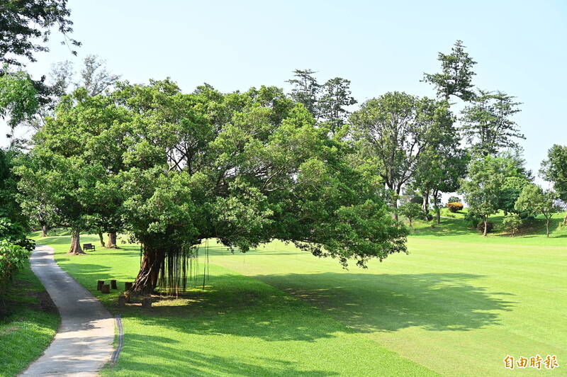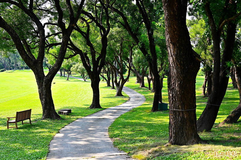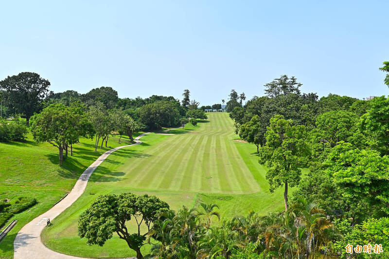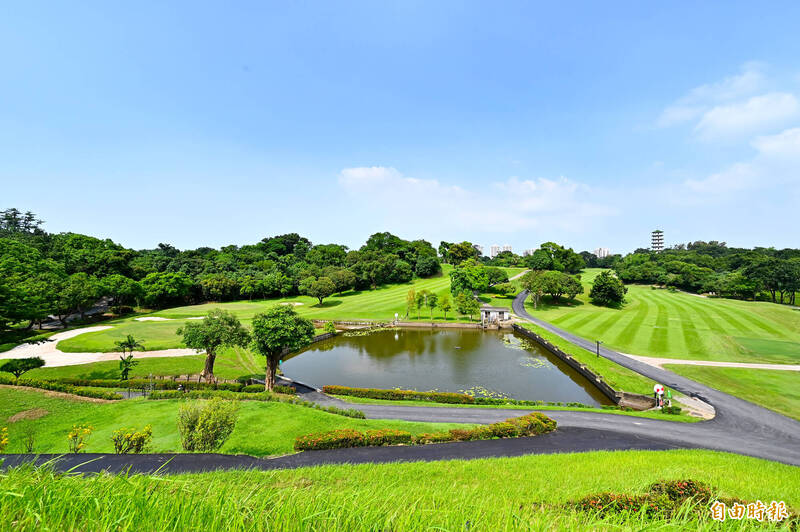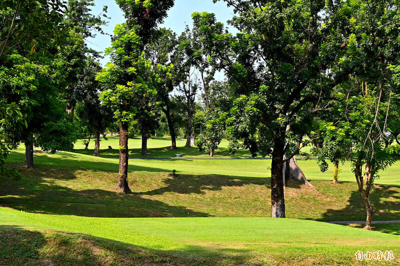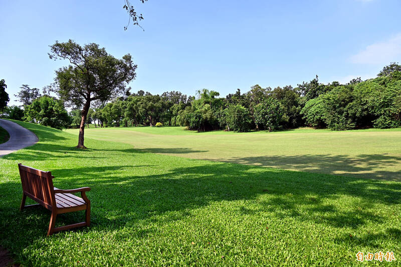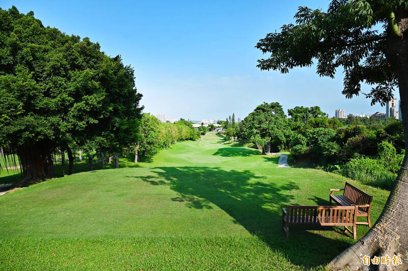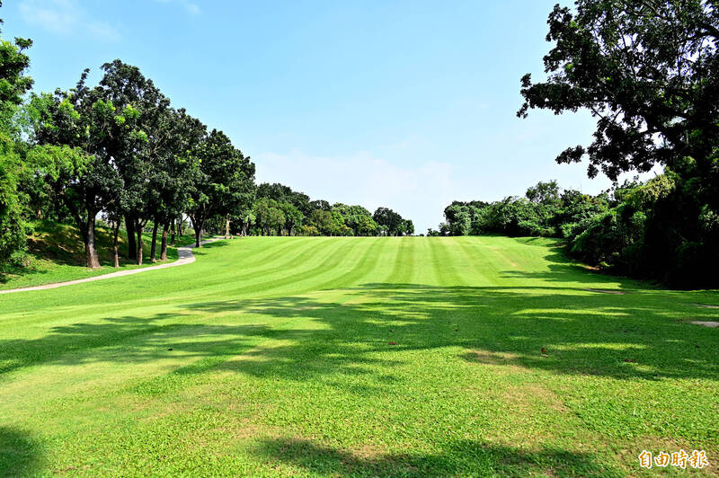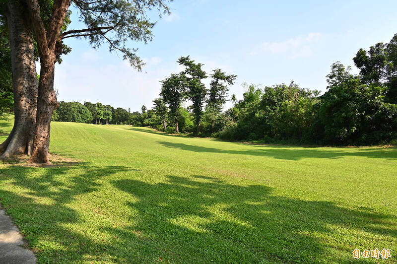 高雄果嶺自然公園保留原本高爾夫球場的果嶺丘陵地形,高低起伏上上下下,整片綠油油的草皮,看了讓人心曠神怡。8(記者李惠洲攝)