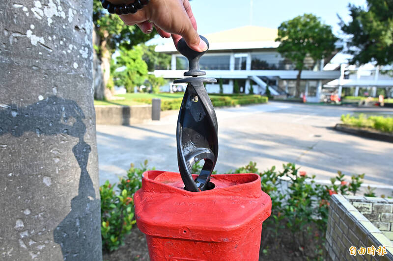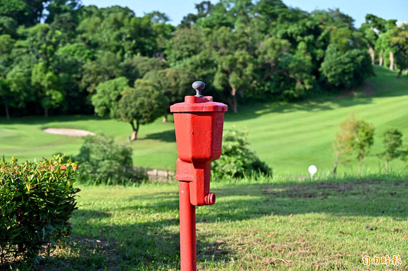 果嶺還保留了紅色洗球水槽,是過去高爾夫球場中,清洗小白球的工具之一。(記者李惠洲攝)