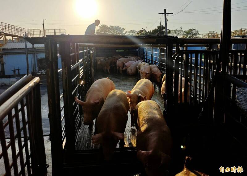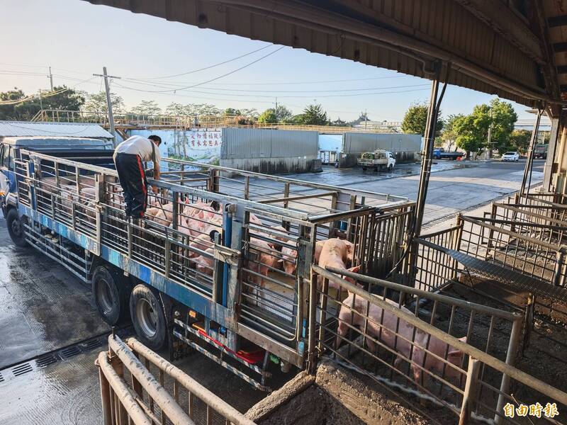 來了來了!活豬上車囉 彰化肉品市場運豬車終於進場