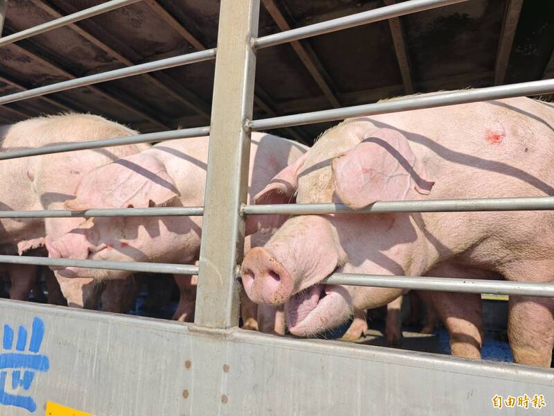 午後氣溫炎熱,不少豬農擔心豬隻緊迫或發生意外,遲遲未出車。下午2點左右,一輛載有48頭豬的貨車短暫出現在肉品市場門口,但未進入,而是與另一輛運豬車在路邊接駁。司機透露,這批豬要運往雲林加工廠屠宰,為避免接駁車進入豬場引發防疫疑慮,才選擇在市場外完成轉運。