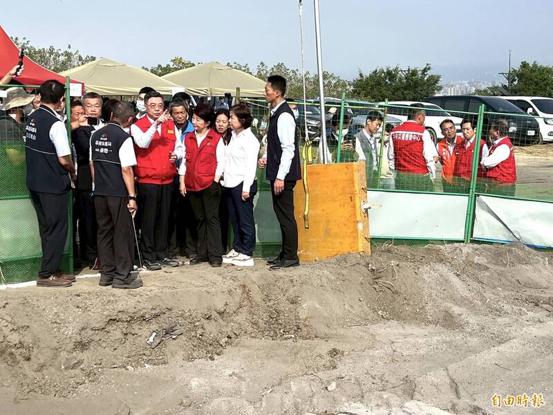 文山掩埋場三期倒運掩埋熟廚餘,卓榮泰與台中市長盧秀燕今天下午2時抵達時土堆飄出惡臭,連卓榮泰在致詞時也遭蒼蠅襲擊,卓榮泰聽取台中市環保局大隊長蔡德一、環境部環境管理署長顏旭明簡報,10月23日起倒入585噸熟廚餘,以及覆土督導改善情形。