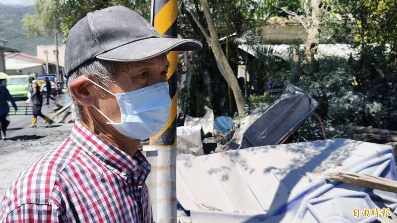 王姓屋主退休後,從台北市移居光復鄉10多年,在光復鄉中正路一段買下平房,一旁種植龍眼樹等樹木,上月15日剛採收完龍眼,木梯就隨手放在家門口,然後去看醫師。他說,22日開著小貨車撤離到豐濱鄉、海拔較高的工寮,洪水隔天回來,看見道路淤泥很深、門前車輛東倒西歪,屋子兩側多了好幾個木梯子,正疑惑著「印象中沒有把梯子放下來啊」。