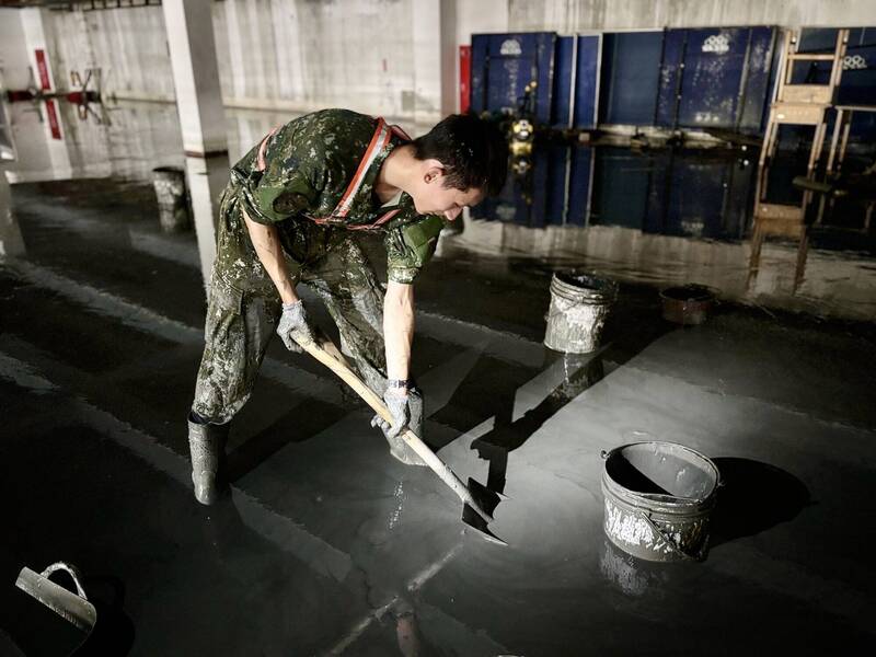 第5作戰區官兵昨深入災區受損嚴重的地下室、協助災民清理環境,雖然空氣悶熱潮濕,但官兵們毫不退縮,以實際行動守護居民家園,展現國軍在第一線與民同在的堅定承諾。