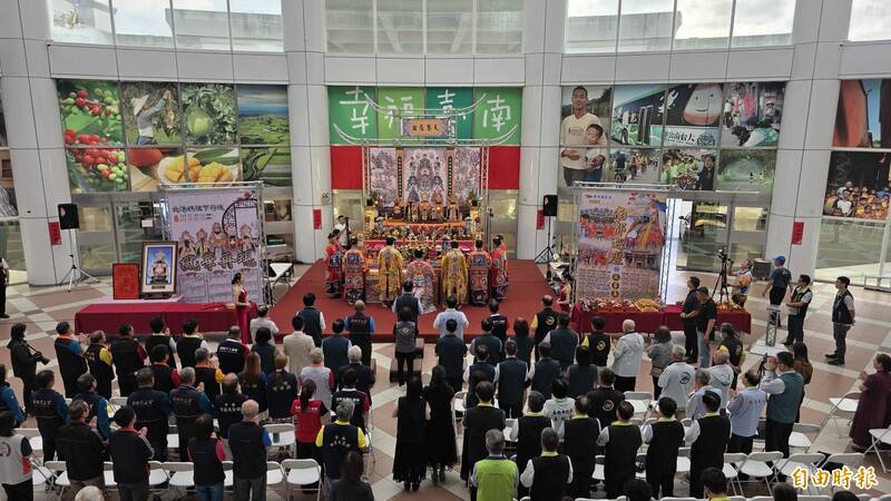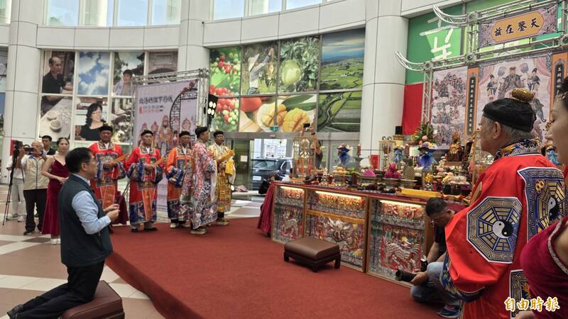 〔記者洪瑞琴/台南報導〕「北港媽會鎮南媽」中斷百年後再度重續香火!為迎接這場宗教盛事,台南市政府今(13)日破天荒在市府2樓中庭設道壇,由資深法師主持祭天祈福儀式,為「2025乙巳年北港朝天宮天上聖母南都巡歷」暖身宣傳。