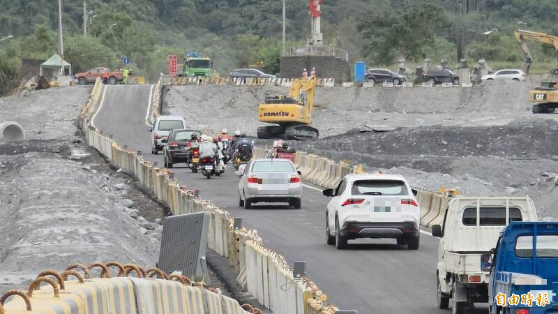 現場工程人員說,為了達到總統賴清德以及交通部長陳世凱的要求,本來一個月後通車的便橋,提前目標到10月15日,後又提前到10月10日今天下午3點通車,他們趕工一直趕到今天早上5點這才大功告成,「大家都是花蓮人,能夠快點通車真的很高興」。