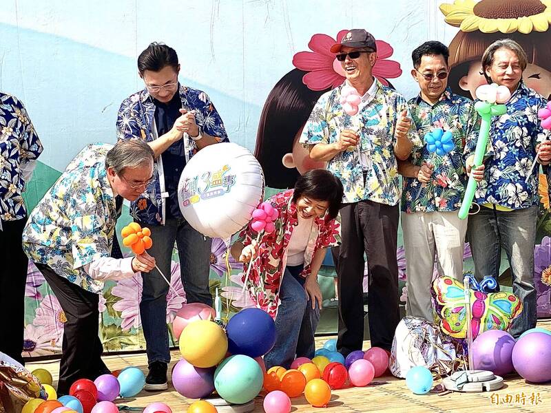 〔記者黃旭磊/台中報導〕中台灣花卉盛典「2025新社花海暨台中國際花毯節」今天舉行開幕式,民進黨立委何欣純由黨部徵召參選2026年台中市長,立法院副院長江啟臣及國民黨立委楊瓊瓔被傳出有意參選下屆市長,3人都穿花襯衫到場比人氣,何欣純滿臉笑容,搶先江啟臣戳破開幕氣球,江啟臣則強調,「這是我們自己的花園、台中最美麗的花園」,爭取鄉親支持。