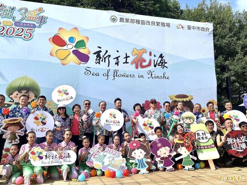 「2025新社花海暨台中國際花毯節」,今天(8日)起至11月31日在新社區種苗改良繁殖場二苗圃舉行,農業部次長胡忠一、台中市副市長黃國榮主持開幕式,何欣純、江啟臣及楊瓊瓔到場爭取支持,開幕式彷如選舉前哨戰,主辦單位安排戳氣球歡慶開幕,何欣純搶先江啟臣戳破腳下氣球,江啟臣鎮定微笑回應,楊瓊瓔則說「普發現金1萬元」歡迎遊客來消費。
