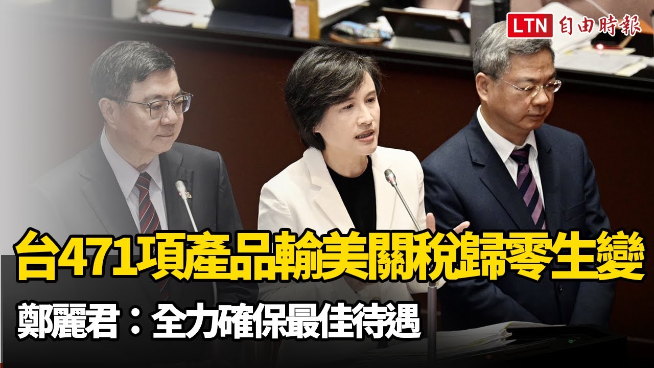 台灣471項產品輸美關稅歸零生變 鄭麗君:全力確保最佳待遇