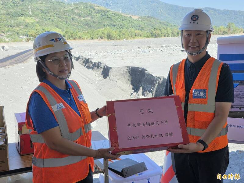 〔記者花孟璟/花蓮報導〕台9線馬太鞍溪橋在上月23日上游堰塞湖潰堤時遭沖斷,經過公路局6個工務段齊心努力,今天交通部長陳世凱到花蓮斷橋現場勘查,宣布明天下午3點涵管便橋通車!比總統賴清德宣示的1個月時間,只花兩個多星期就完成。