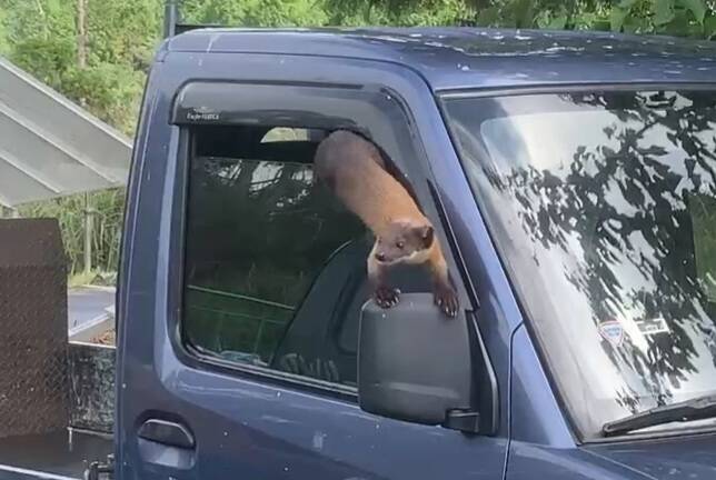 大膽「貂」民!宜蘭太平山黃喉貂溜進貨車副駕駛座