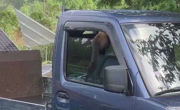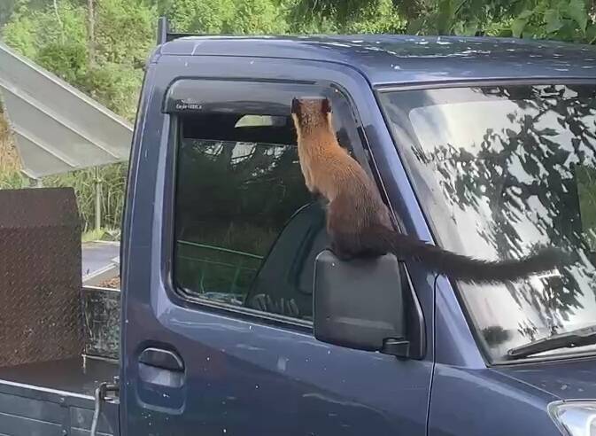 〔記者江志雄/宜蘭報導〕宜蘭縣太平山國家森林遊樂區黃喉貂頻頻現蹤,最近有輛貨車停在翠峰湖第一停車場,副駕駛座車窗沒關好,一隻黃喉貂疑似為了覓食,兩度從車窗縫隙鑽進車內,各界笑稱「大膽貂民」、「會不會哪一天,車子就這樣被貂民開走了」。