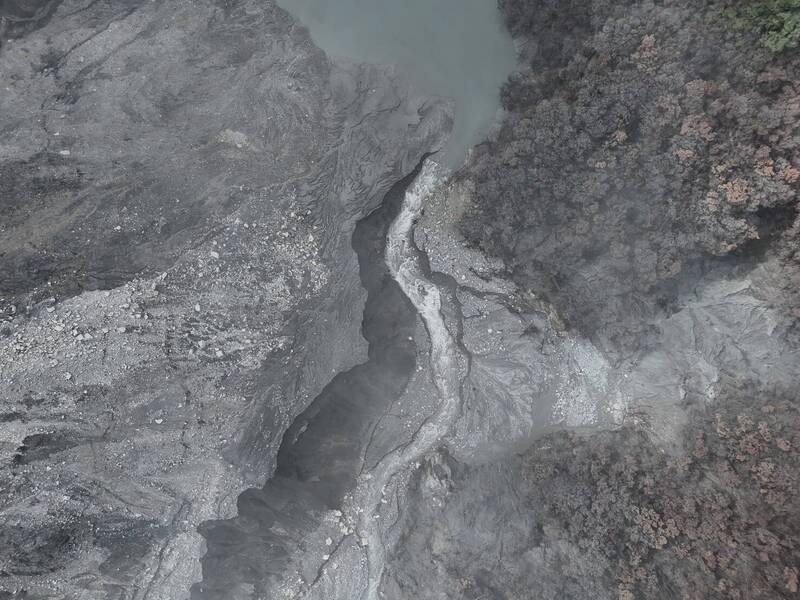 林業保育署花蓮分署指出,今天清晨因山區仍在降雨,無法上山空拍,至中午天氣放晴,立即進行空拍,結果顯示新、舊堰塞湖量體均明顯縮小,新堰塞湖蓄水剩20萬公噸、舊堰塞湖35萬公噸,水量穩定且持續溢流,溢流口及兩側邊坡也沒有再崩塌或堵塞,下游河道水位穩定下降,整體水勢在可控範圍。