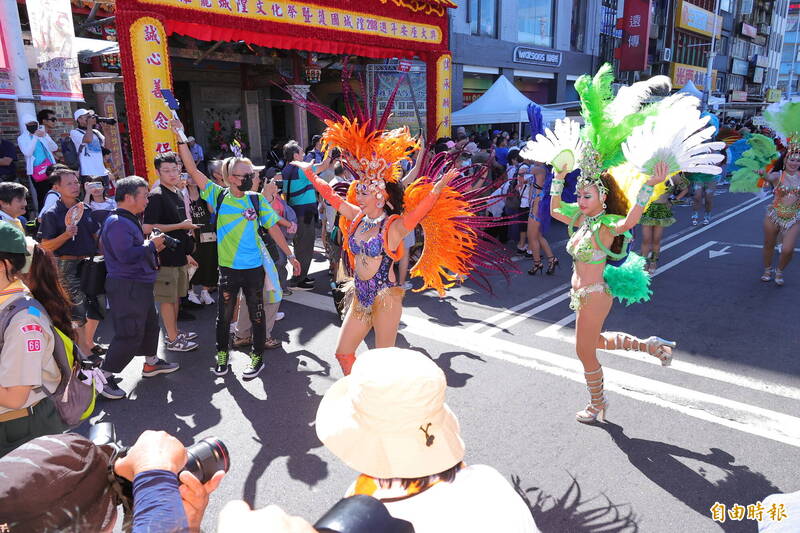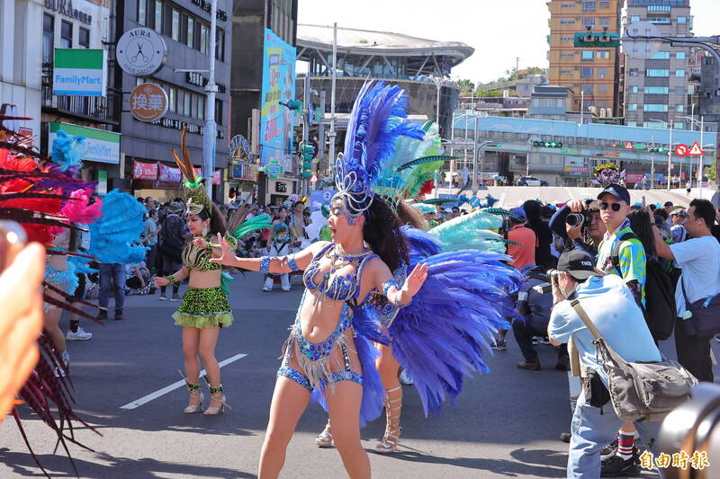 〔記者俞肇福/基隆報導〕2025基隆國際海洋老鷹嘉年華今天(4日)下午在森巴鼓聲中震撼登場,邁入第15週年的海洋老鷹嘉年華,在大壯觀願景發展協會理事長蔡秋霖領軍下,帶領兩組大型空飄氣球與來自全台、日本及墨西哥等地近50組團體,從國門廣場出發,沿途與街上民眾熱情互動,歡笑聲不絕於耳,基隆市區從今天下午1點交通管制到4點,道路兩旁站滿親友應援團、從專業單眼相機到各式各樣手機搶拍森巴女郎舞波電臀,再加上震天尬響的森巴鼓聲,嗨翻港都基隆。
