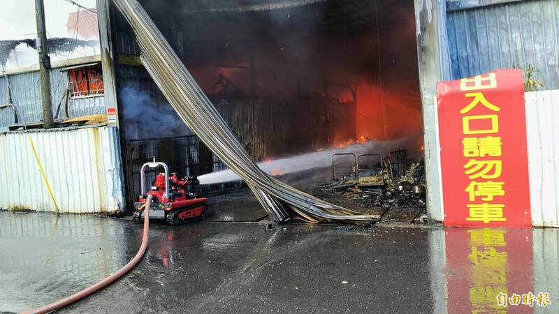 在70多位警義消、18輛大小消防車全力救災下,鐵皮倉庫火勢在下午4點20分左右獲得控制,燃燒面積超過2千平方公尺,起火原因仍待火場調查。