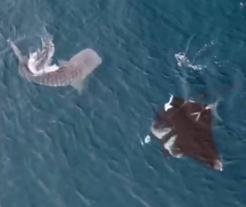 〔記者劉禹慶/澎湖報導〕新近澎湖北海毛司嶼,出現大批糠蝦聚集,吸引成群的珍貴保育類鬼蝠魟、鯨鯊追逐覓食而來,成為海洋盛會,讓不少空拍機、潛水愛好者趨之若鶩,但隨著糠蝦群消失,也不再見鬼蝠魟、鯨鯊身影,澎湖海洋保育志工隊長陳盡川給了最佳註解「因緣聚會而來、緣盡而散。」