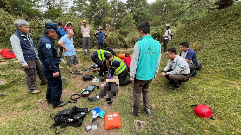 中午12時56分,玉管處塔塔加管理站人員接觸到張姓山友,他表示胸悶想吐,下午1時12分該山友即無呼吸、無脈搏,現場2名具醫護背景山友協助CPR,消防救護人員隨後趕到接力救援,玉管處也送來AED,現場電擊7、8次,再由玉山分隊救護人員建立進階呼吸道給氧、輸液管路,及自動體外心肺復甦機進行急救。