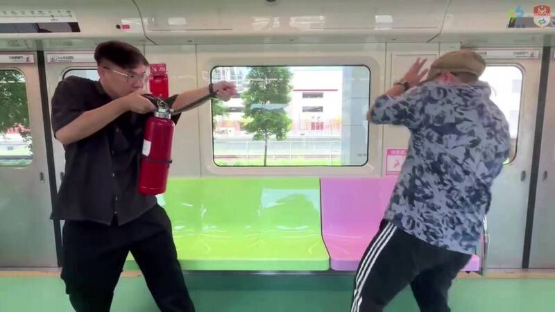 而在列車緊急設備方面,宣導影片詳細介紹緊急按鈕、緊急對講機、開門把手及滅火器等設備的使用方式。中捷公司提醒,旅客若遇緊急狀況,請利用緊急對講機通報行控中心,行控中心將立即聯繫站務人員與捷運警察趕赴現場處理。