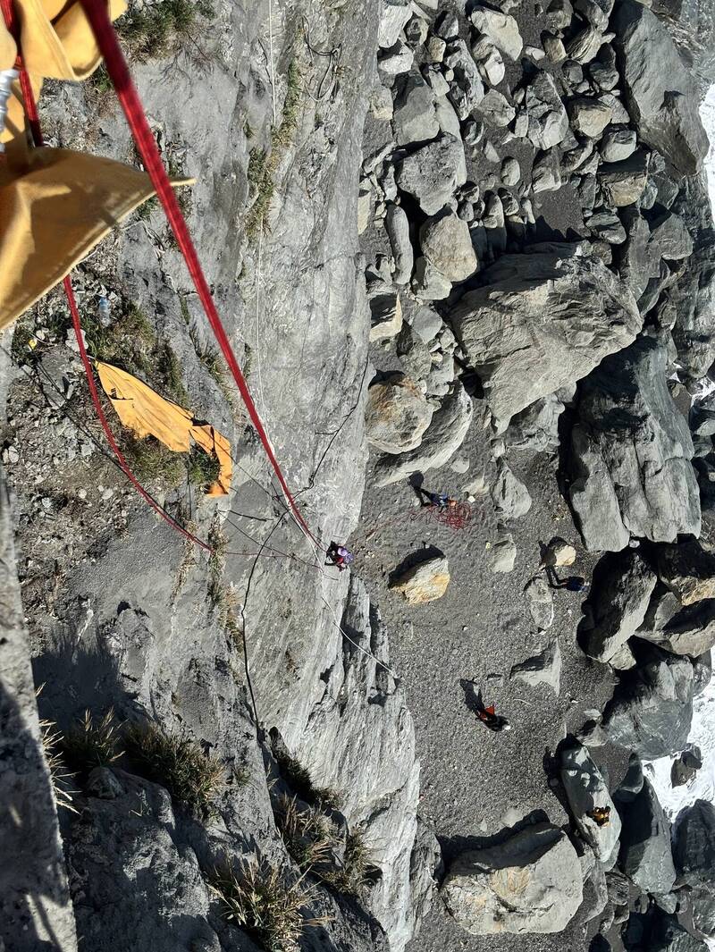 另外,有4名民眾受困於下方的沙灘,約50米深的位置,花蓮縣消防局特搜大隊等救難人員計9人,利用繩索技術協助,在下午約1點左右把4名民眾順利脫困。花蓮縣消防局呼籲,近日東北季風影響,沿海風浪變大,呼籲民眾不要太靠近海岸,也呼籲民眾不要任意前往象鼻隧道攀岩。
