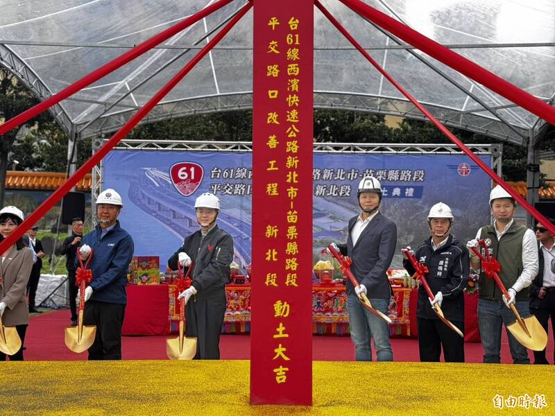行政院長卓榮泰、交通部長陳世凱、新北市副市長朱惕之、交通部公路局長林福山等人出席動土儀式,祈福工程如質如期完成。林福山指出,台61線快速公路原核定計畫路線於2020年全線通車,速限為90公里,是西部濱海走廊幹道。公路局持續推動延伸工程,新北到苗栗既有23處平交路口具衝突風險,需優先高架化改善。