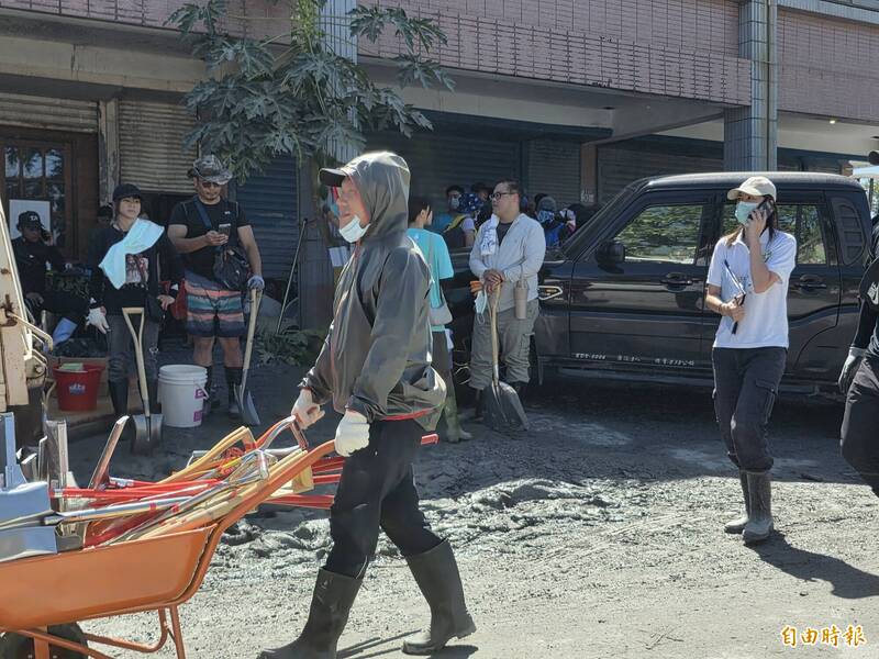 不過車潮到了阿陶莫部落過後,突然整個緩解,原來阿陶莫部落位於馬太鞍溪河道匯入花蓮溪的轉彎處,部落位置正對堰塞湖,23日大水直衝造成慘重災情,缺人缺機具,因為網路上鄉民號召,加上國軍今天也進到阿陶莫,讓小小的阿陶莫部落湧入大量鏟子超人幫忙挖沙、也有重機械,水車進駐幫忙,物資也來了,讓族人超級感謝。