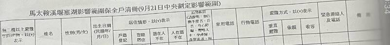 臉書社團「花蓮光復人」昨晚有人PO一段影片,內容敍述大平村有位鄰長拿著村幹事交付的「馬太鞍溪堰塞湖」影響範圍保全戶清冊,還註明是「9月21日中央擬定影響範圍」,挨家挨戶調查當天每戶家中人數及基本資料,災民聽到是23天之前應該做的調查,事後才補做資料,直覺是造假,也有偽造文書之嫌,趕緊錄影存證,並提醒其他災民注意不要接受調查,鄰長聞訊後也覺得不妥,只好停止調查作業。