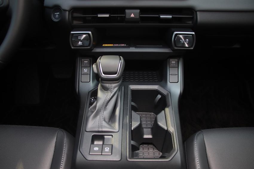 RAV4 旗艦在車艙配備也相當不錯,雙前座都有通風加熱功能,駕駛座還獨享 Easy Access 的迎賓模式,座椅造型也有新變化,雙後座更首度具備加熱功能,對於長輩或是怕冷的乘客而言,是個貼心的小配備。後座有 15W 的 Type-c 插槽外,前座更是升級到 45W 的 Type-c 插槽搭配兩組無線充電板,45W 的功率已經能提供平板、筆電的充電基本需求。方向盤配置實體快撥鍵,符合開車的使用習慣,不過 RAV4 旗艦並未配置換檔撥片,必須透過排檔桿旁進行升降檔,這點頗為可惜,或許要等到新年式或小改款時才有機會補上。