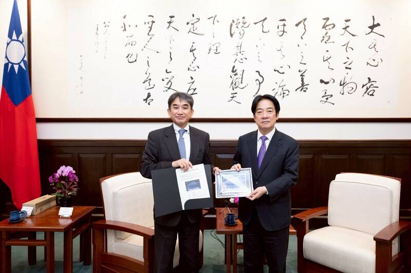 賴清德指出,根據最新民調顯示,台日都有超過七成民眾認為當前關係良好,這份成果與垂大使在外務省任內積極推動台日關係發展息息相關,感謝垂大使退休後持續關注兩岸情勢並發揮影響力,讓台日交流的友好基礎更加堅實。