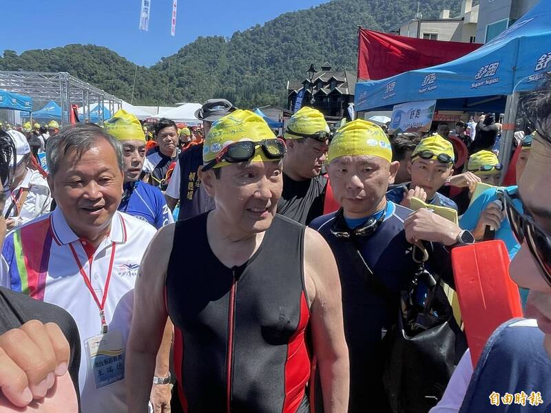 12度泳渡日月潭!馬英九上岸狂擺拍 進步10分鐘嫌太慢